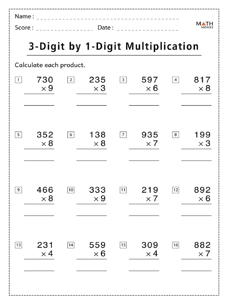 3 Digit By 1 Digit Multiplication Worksheets - Featuring 12 multiplication problems , this worksheet is ideal for. Download free printable worksheets for multiplying numbers up to 1,000 by single digit numbers. This multiplication worksheet may be configured for 2, 3, or 4 digit multiplicands being multiplied by 1, 2, or 3 digit multipliers. Download free pdf worksheets to practice 3 digit by 1 digit multiplication problems. Learn how to multiply 3 digit numbers by 1 digit numbers with examples and animations. 952 1 952 × 7.